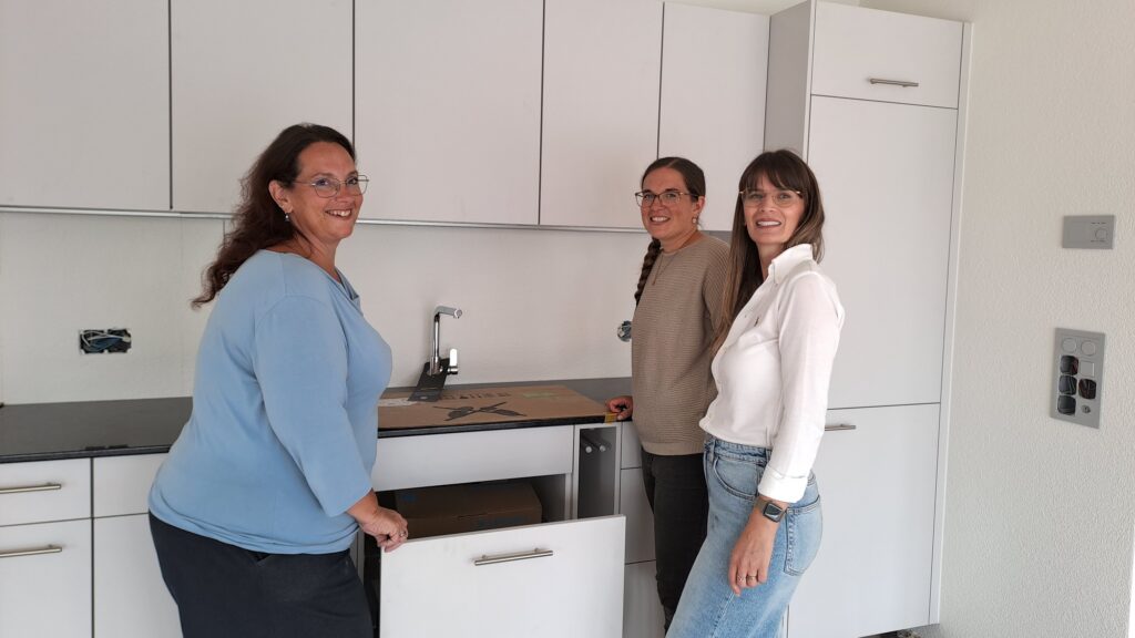 Ein starkes Team – Birgit Spangaro, Sandra Lendi und Arbnora Kabashi (v.l.n.r.) beim Begutachten der neuen Küchen. weiterlesen